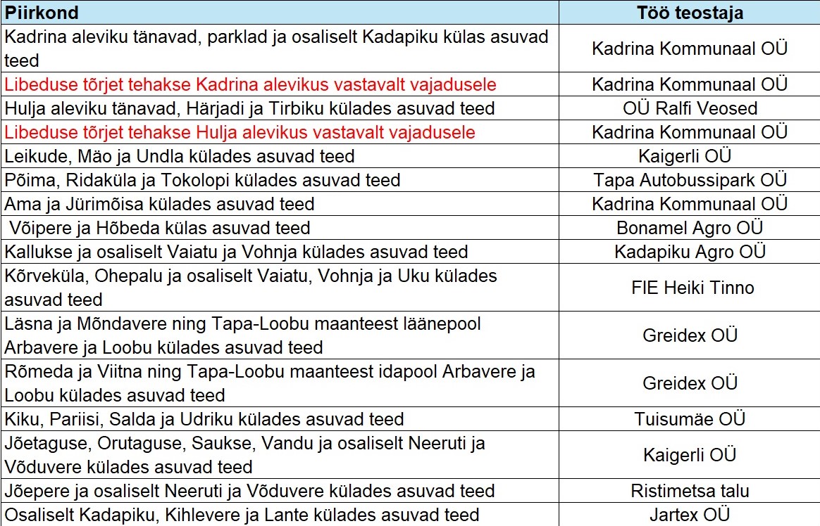 Kadrina vald on jagatud 14 lumelükkamise piirkonnaks, kus teenuse osutajad on selgunud riigihanke tulemusel.