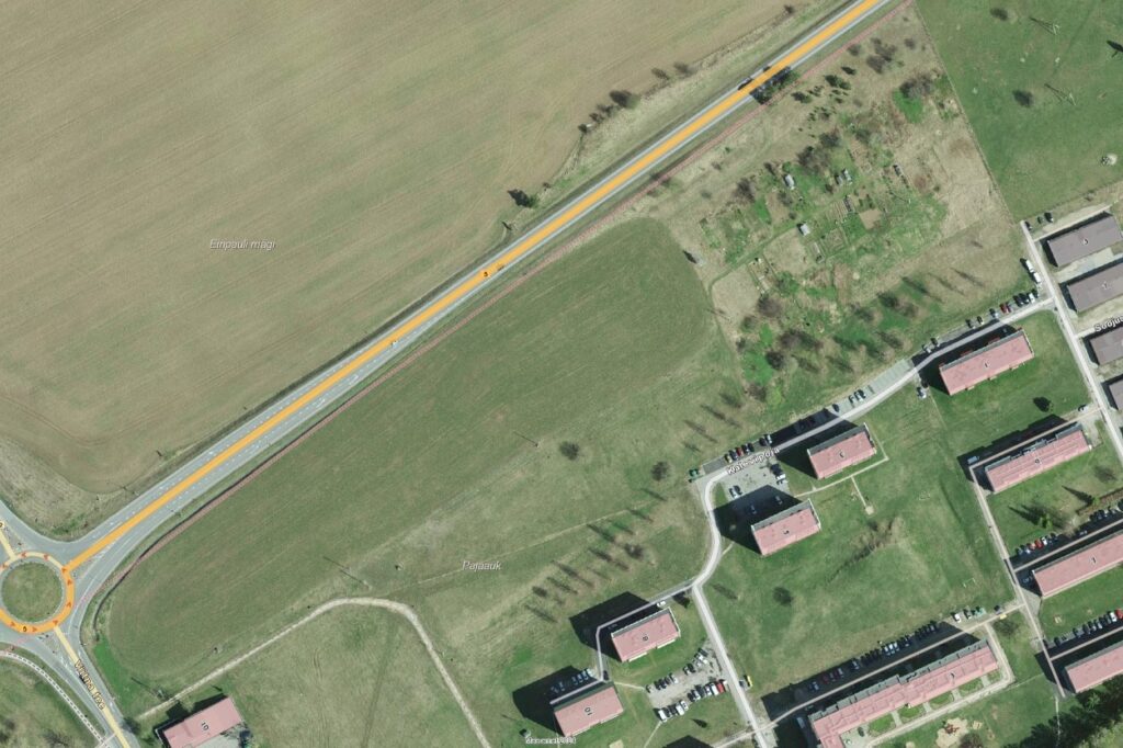 Fotol on näha Kalevipoja rajooni ja maanteed, mille vahele Tammeparki rajama hakatakse.