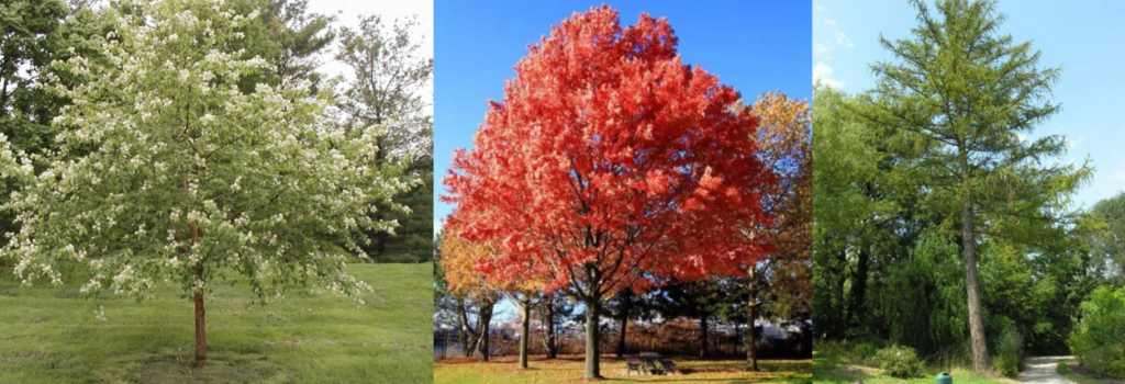 Esimeses etapis istutatud puud: Amuuri tomingas, punane tamm ja siberi lehis.