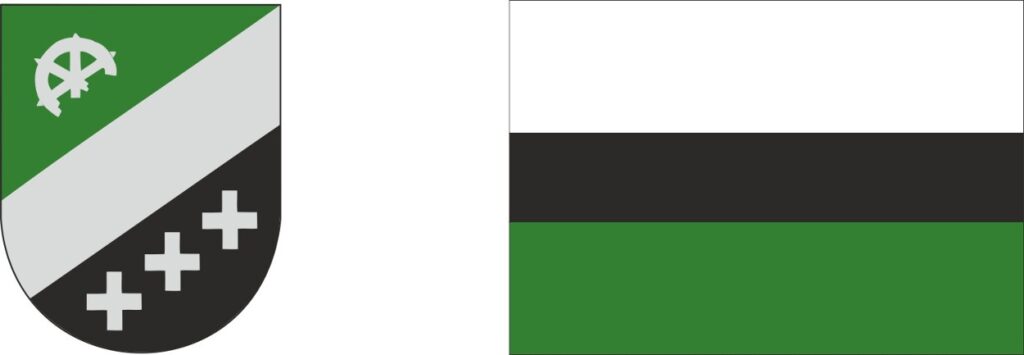 Lipu kirjeldus: valge ja rohelisega põigiti jaotatud väljal must poom laiuste suhtega 3:2:3. Lipu laiuse ja pikkuse suhe on 7:11, normaalsuurus 105×165 cm.
